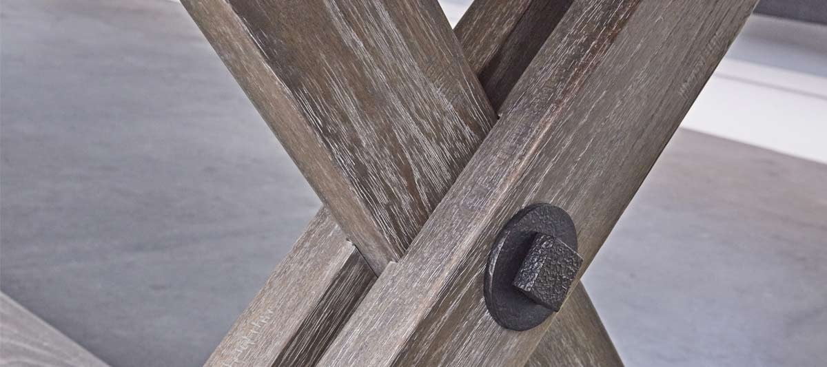 • Hammered metal hardware and distinctive “X” foundation design • Hand-rubbed antique finish showcasing the natural grains and texture of the cabinet’s rough-hewn wood • Climate adjusters • Accessories include: four black weights, four red weights, built-in abacus scoring system, table brush, and shuffleboard wax